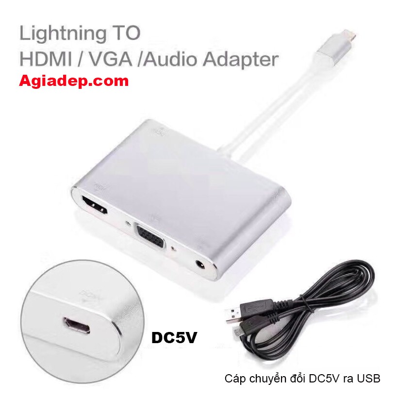 Dây cáp chuyển tín hiệu Iphone Lightning to HDMI và VGA chất lượng cao Agiadep (sang Máy chiếu, Tivi) Bản to, Bền, Tốt free ship