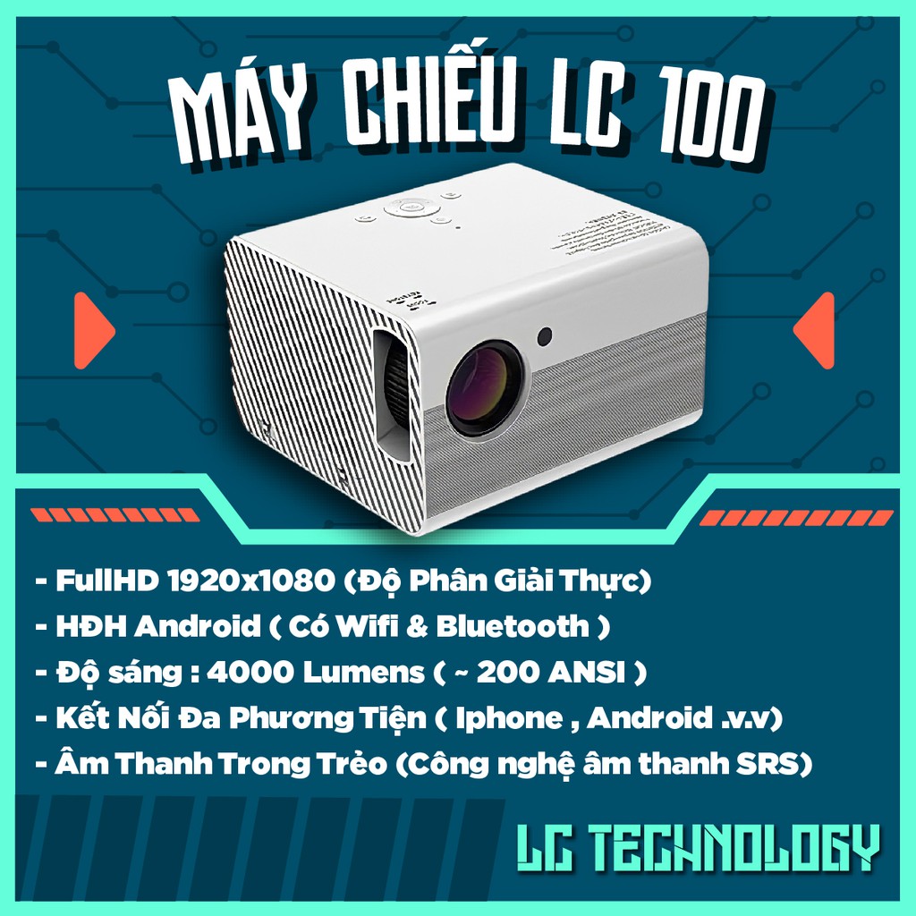 Miễn phí đổi trả nếu bán hàng kém chất lượng. Hiện tại Máy Chiếu mini Full HD 1920x1080 LC100 Tích Hợp Hệ Điều Hành Android Với Độ Sáng Cao 4200 lumen - Rạp Phim Tại Nhà đang được giảm giá chỉ còn 2,325,000đ. Số lượng có hạn hãy nhanh tay đặt khi còn hàng bạn nhé
